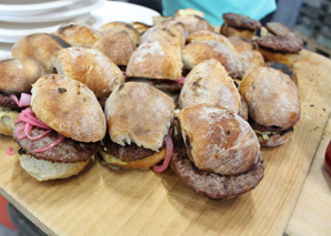 - Chimi Burger: Burger aus Rindfleisch im Mini-Bürli-Bun mit eingelegten roten Zwiebeln und hausgemachter Chimichurri-Mayo