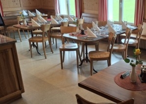 Tout ce que vous désirez est servi : tresse au beurre fraîche, pain fumé et petits pains, confiture, beurre, birchermüesli avec pomme, salade de fruits frais, yogourt, rösti, œufs au plat ou brouillés, fine salade de saucisses et de fromage et un choix varié de charcuterie avec fromage et saucisse. Le tout accompagné d'un thé, d'un café filtre, d'un chocolat chaud ou d'un jus d'orange - tout est compris.